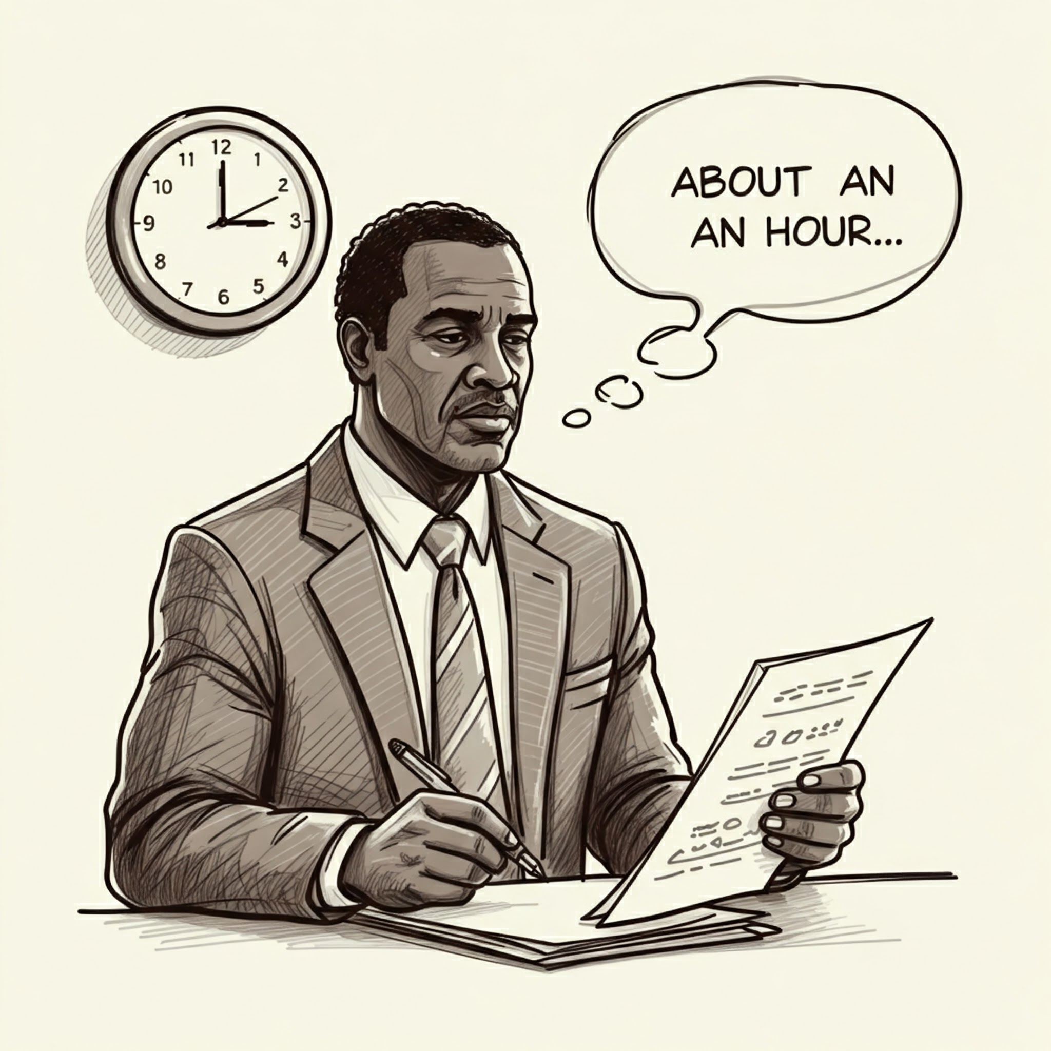 - Example: "He estimated that the meeting would take about an hour."