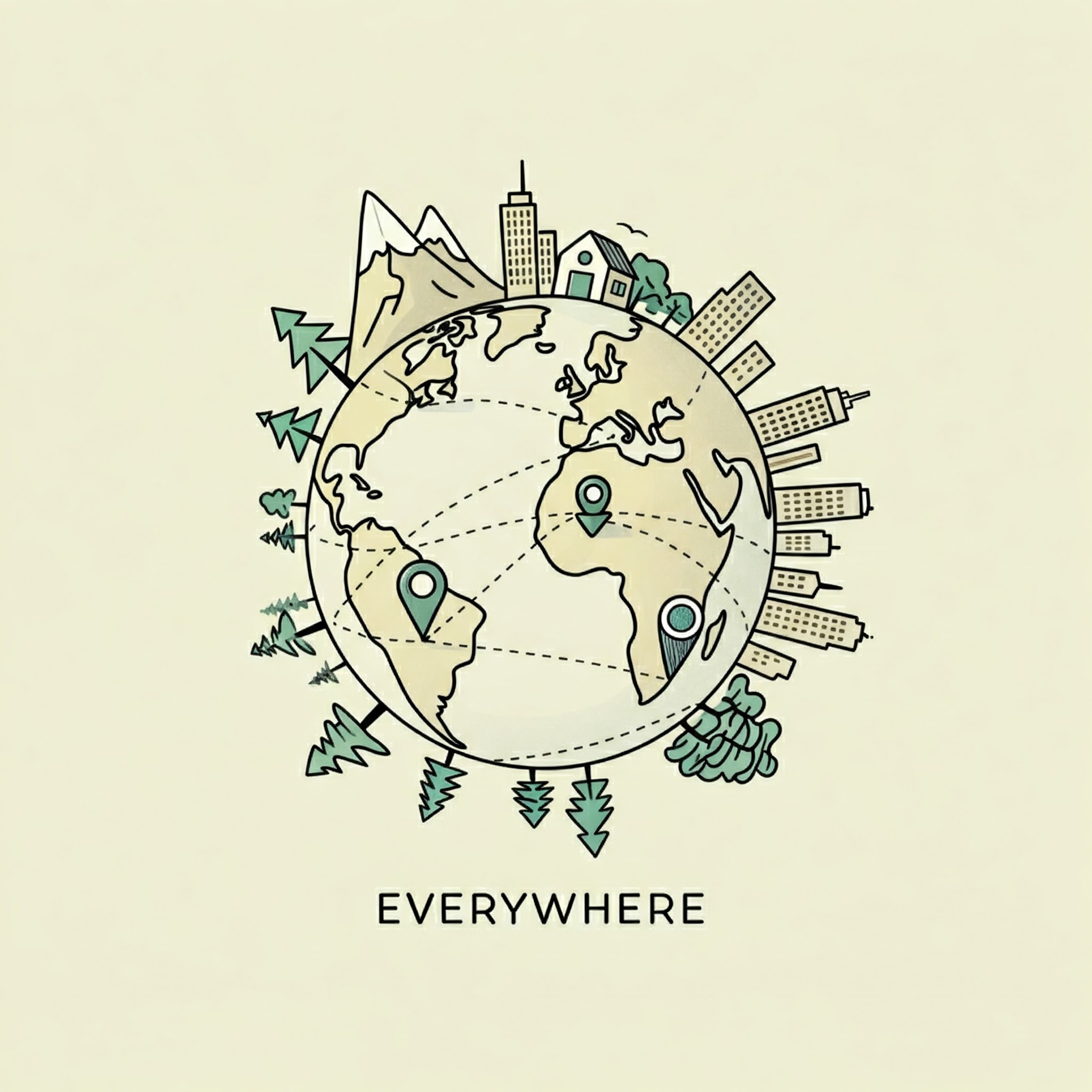 The word "everywhere" originates from Middle English, formed by combining "every," indicating inclusiveness, and "where," meaning place or location. It entered English in the 14th century to refer to "all places" or "anywhere."