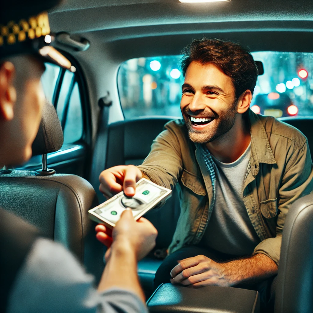 - Example: The taxi driver picked up his last fare for the night.