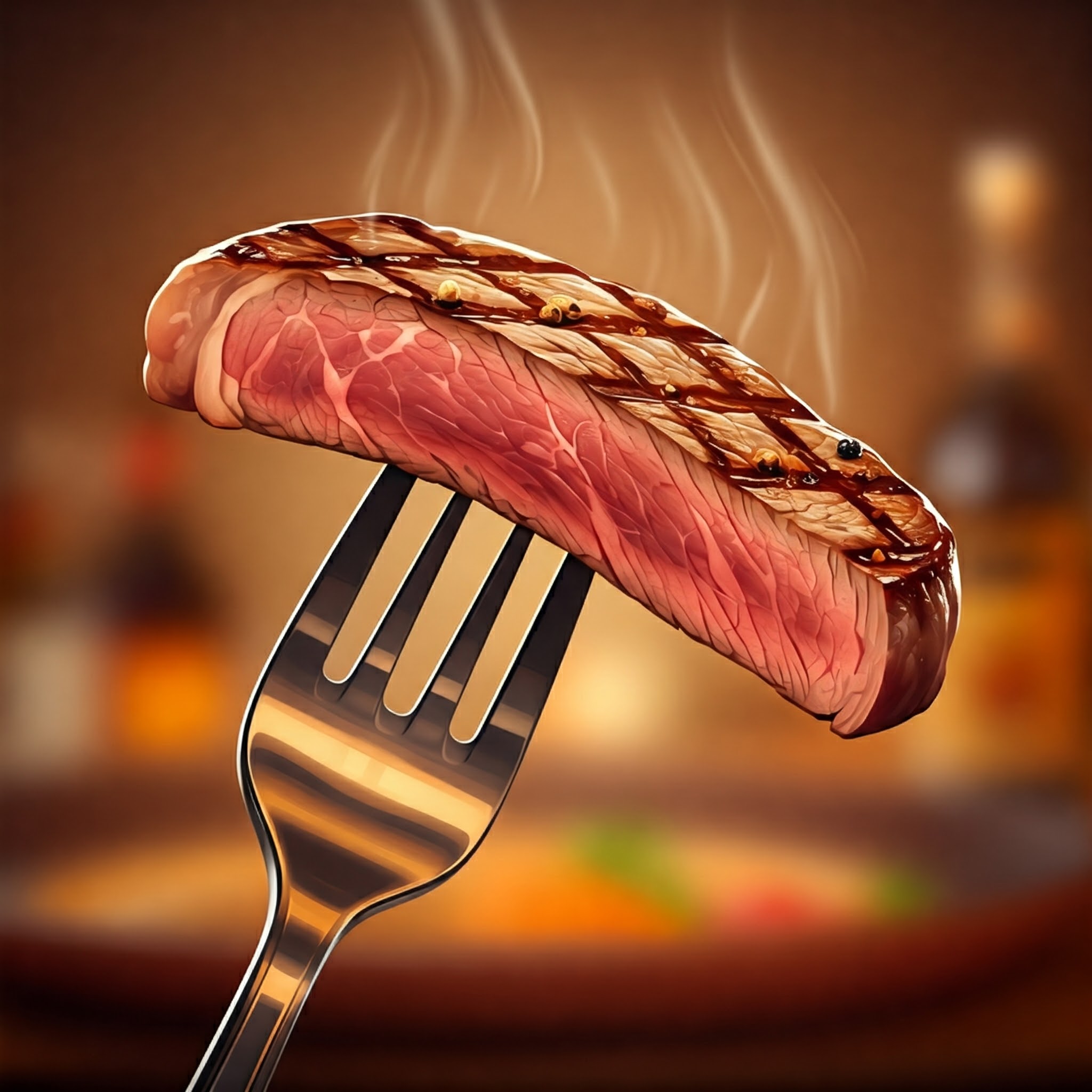 He picked up his steak with a fork.
