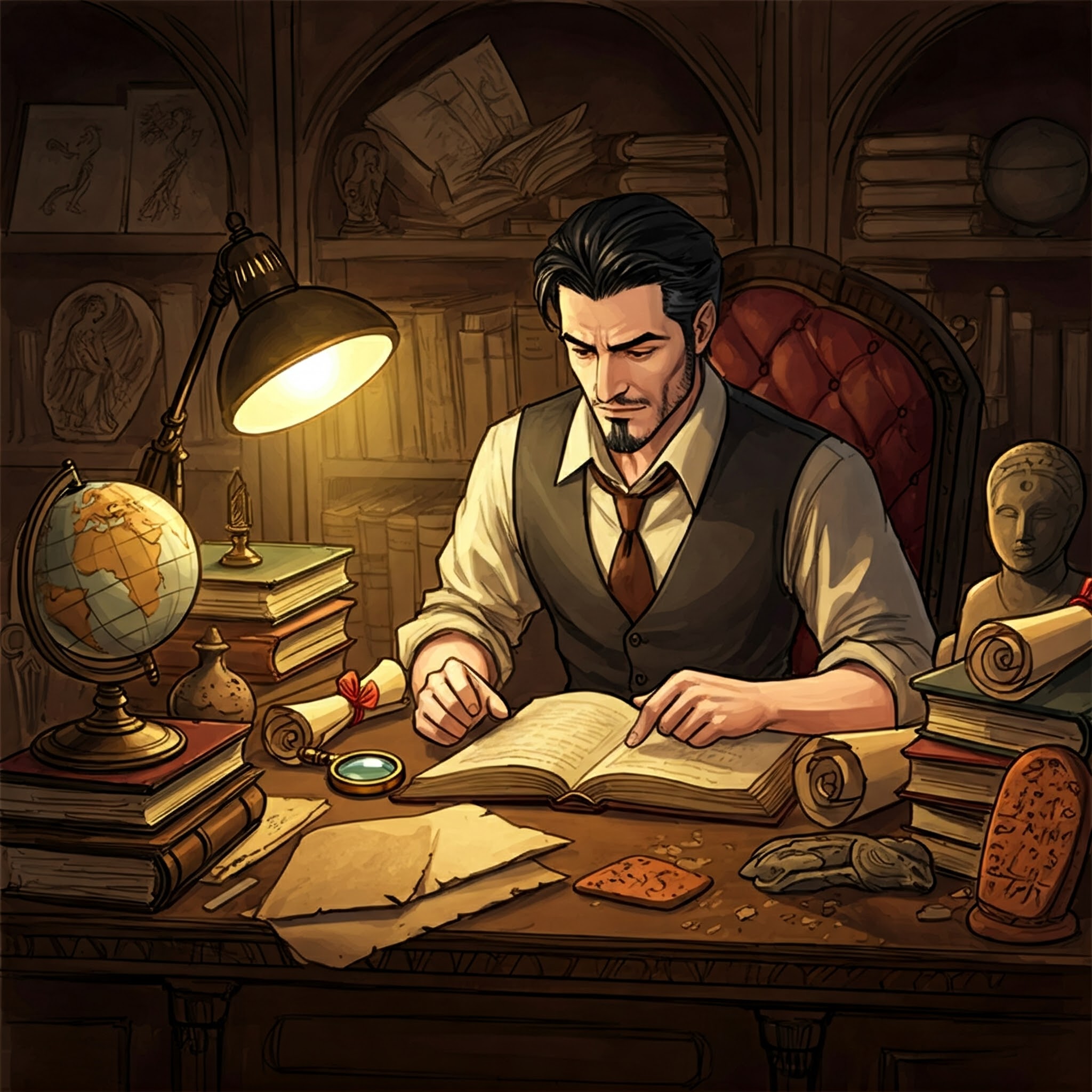 His hobby is studying ancient history.