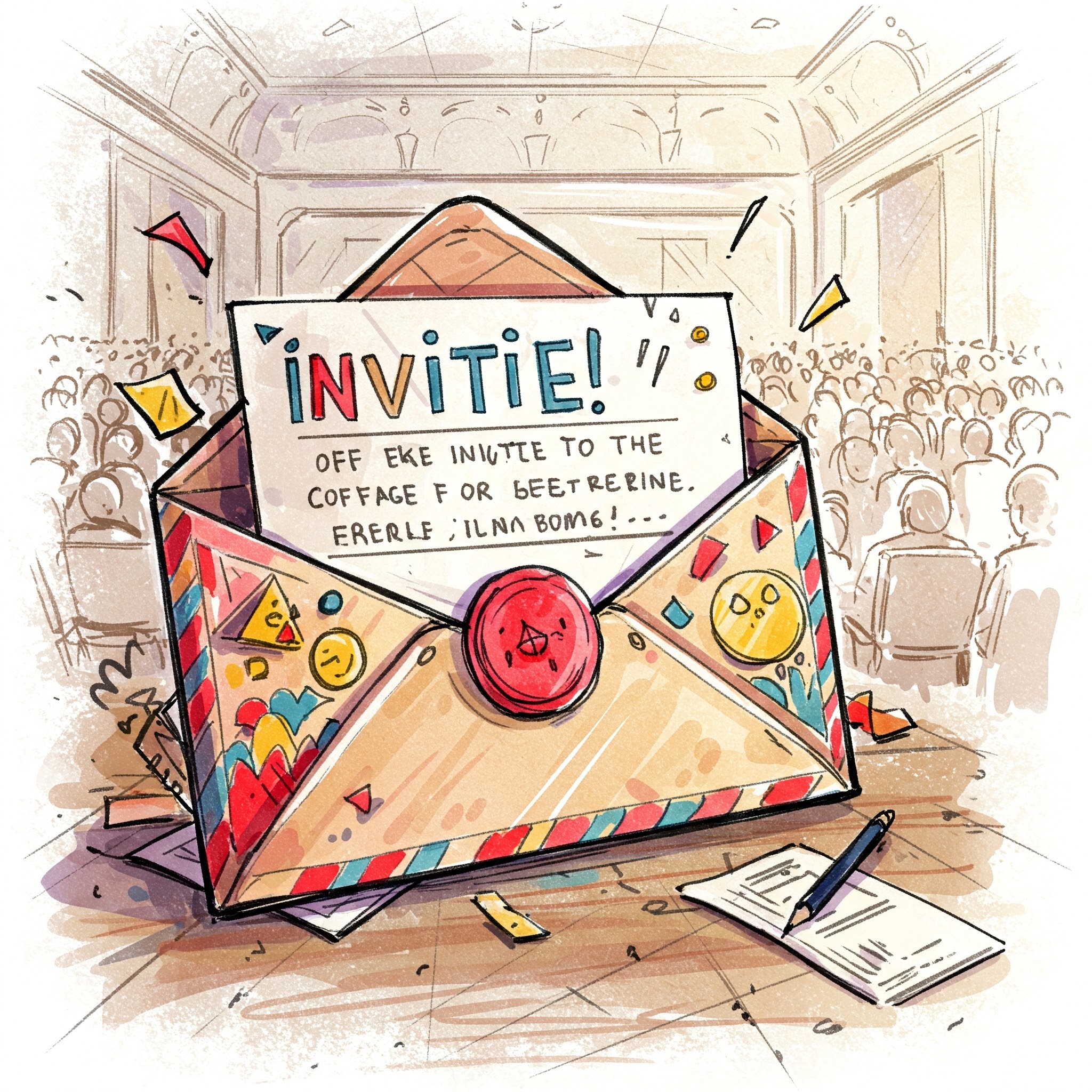 The verb "invite" is commonly used to describe asking someone to participate in an event, e.g., "She invited her friends to the party." As a noun, it refers to a formal request, such as "I received an invite to the wedding." The term can also metaphorically mean to provoke or attract, e.g., "His actions invited criticism."