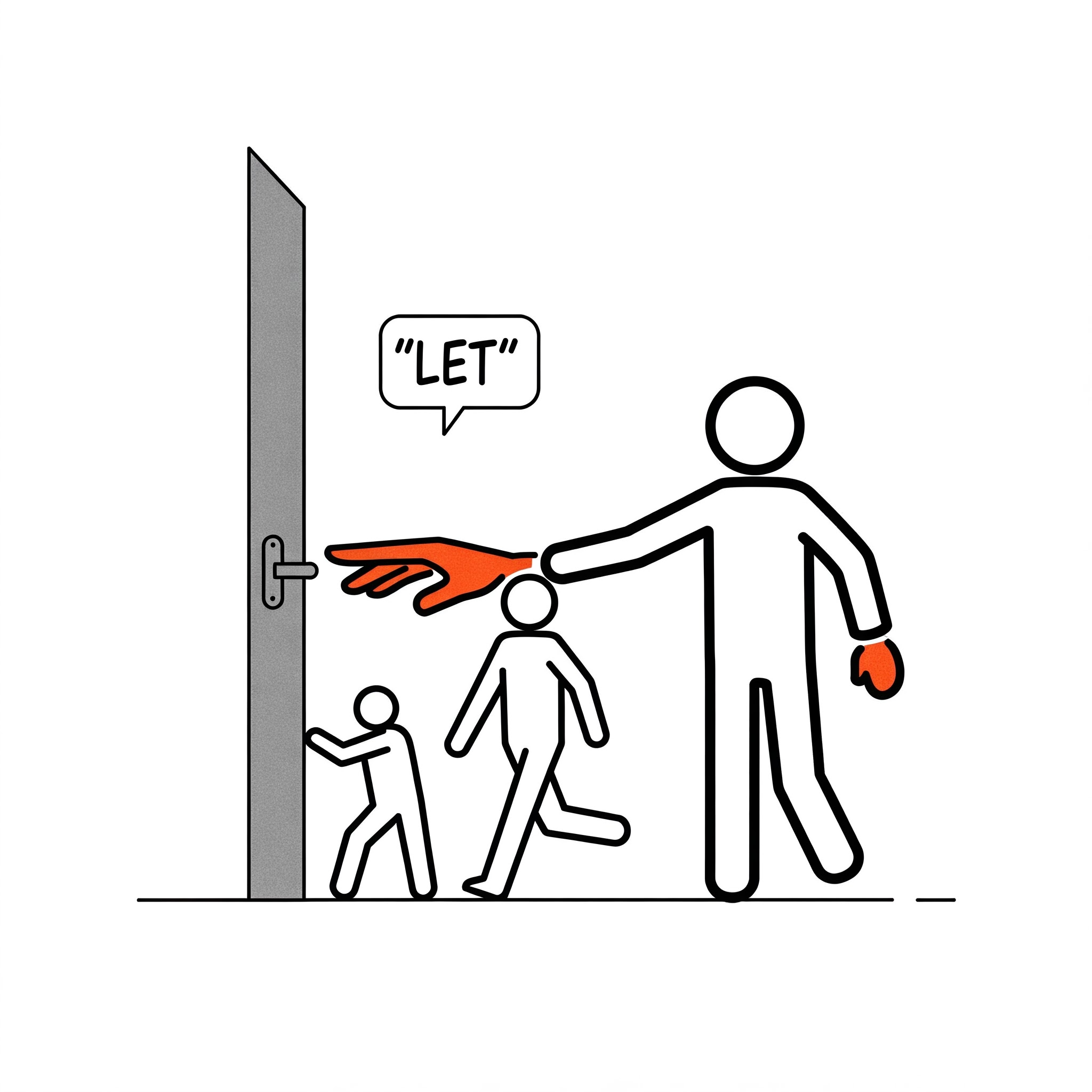 The word "let" originates from Old English "lǣtan," meaning "to allow, permit, or leave," derived from Proto-Germanic "*lētaną," meaning "to allow" or "to let go." It is related to the Dutch "laten" and German "lassen," with similar meanings.