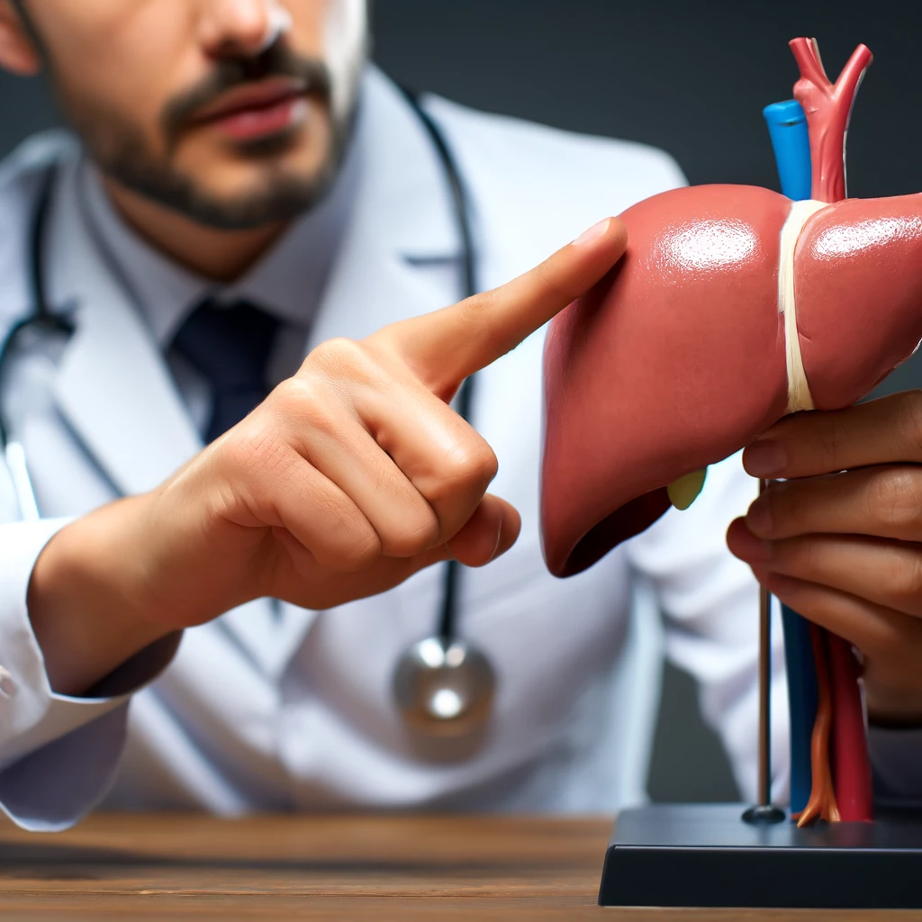 The doctor pointed to the liver on the anatomical model during the lecture.