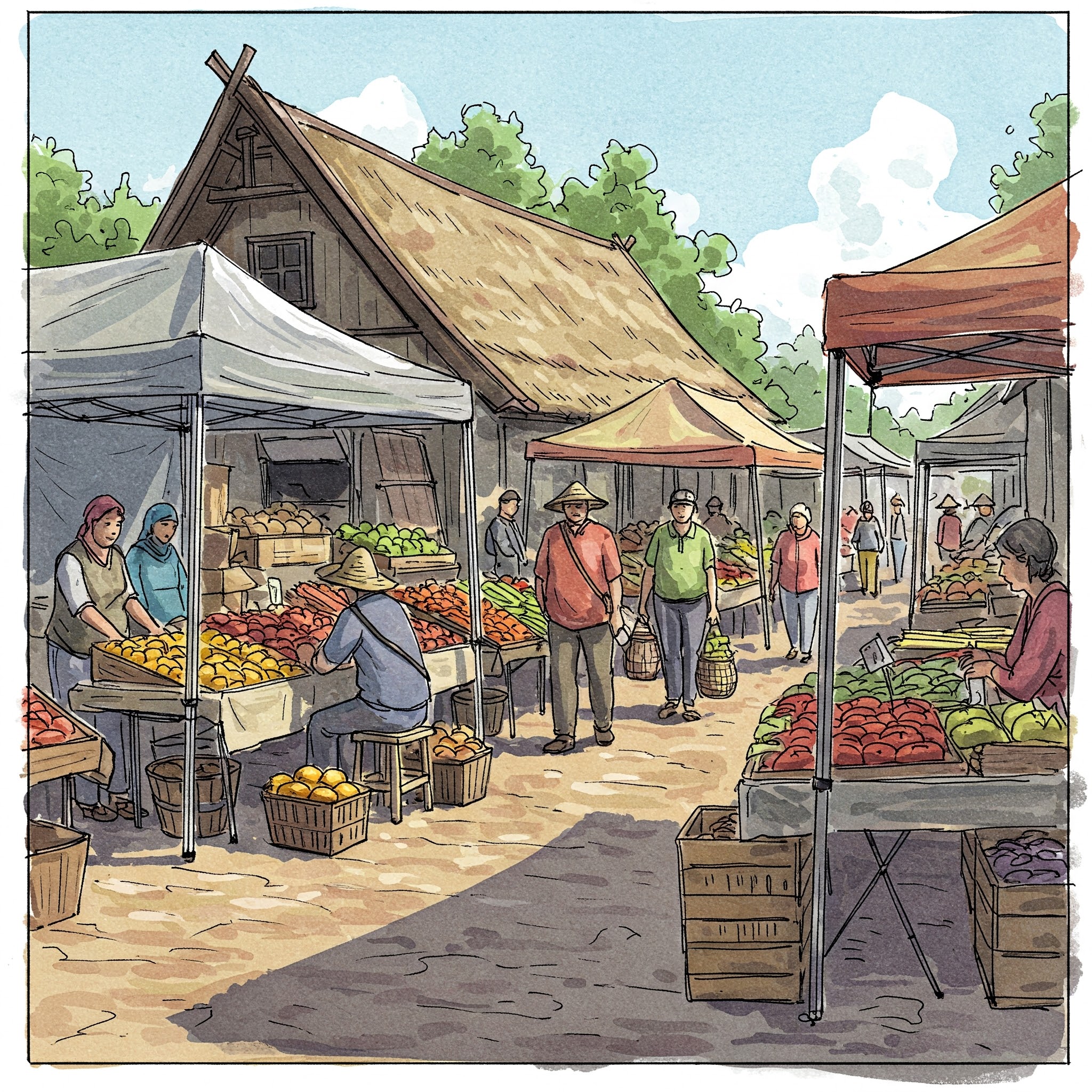 - Example: "The village market is a weekly event."