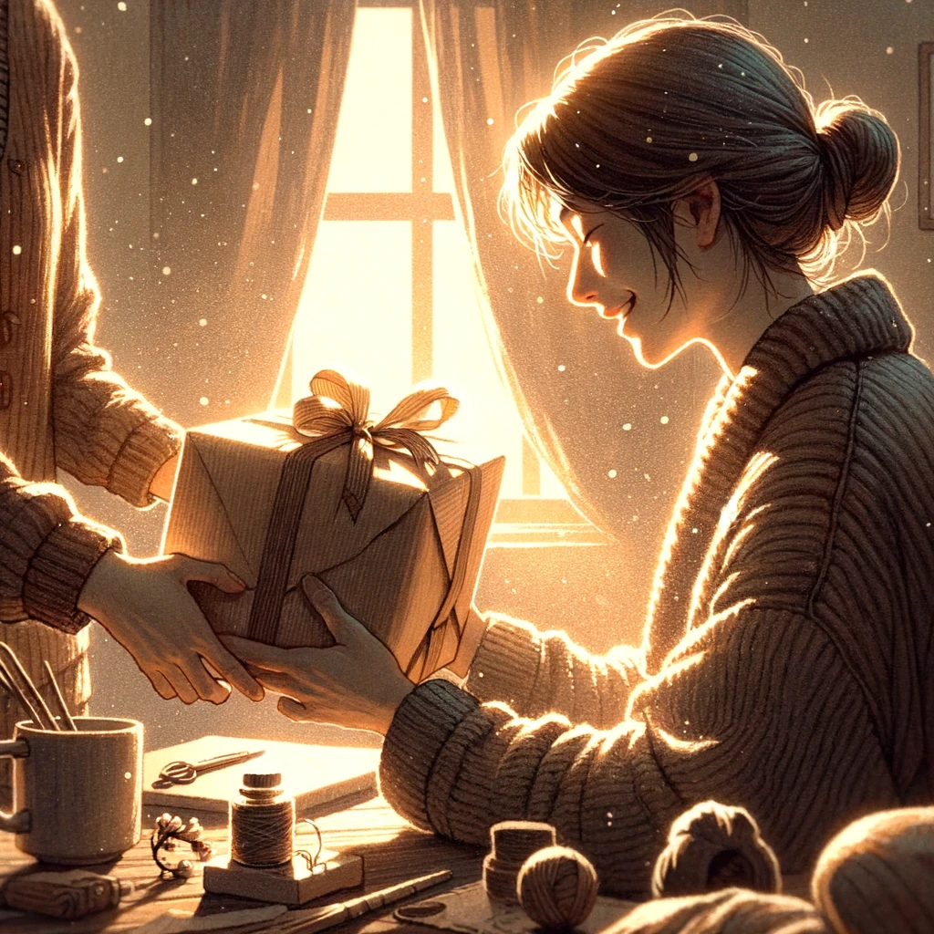 A handmade gift expressed a sentiment of gratitude and friendship.